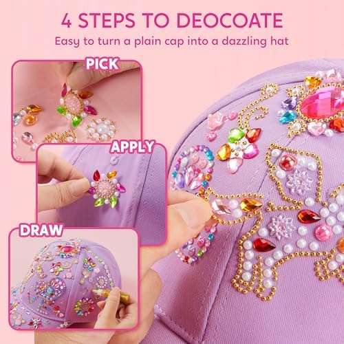 Creative Design: The plain purple gem hat is a blank canvas, inspiring endless DIY ideas for kids. They can easily transform the baseball cap’s look by adding adhesive gems (pre-glued, no extra glue needed) and glitter glues. Let glitter glue dry completely before use