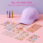 Fashion Fun: Let your kids unleash their inner fashion designer! With shimmery gems and glitter glues, they can create endless styles, turning the plain purple cap into a trendy, one-of-a-kind accessory. This activity encourages self-expression, ignites creativity, and lets them enjoy wearing something they designed all by themselves