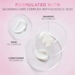 Hair Care Routine for Color Treated Hair: Glossing Shampoo, Conditioner & Hair Mask System, an at-home glossing service with Glycolic Acid, delivers 8x smoother hair & up to five days of intense glass shine for shinier hair than the $82 glossing bundle