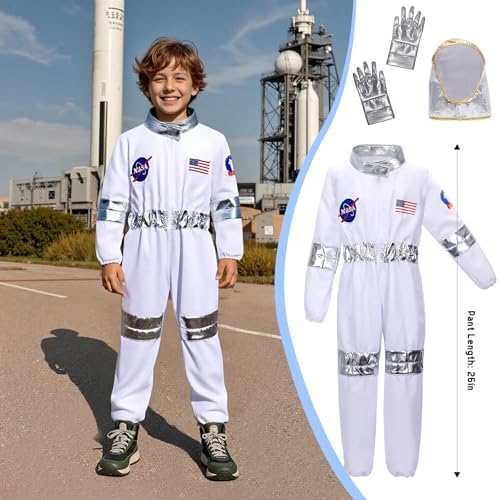 The LOYO astronaut costume for Kids will be the perfect costume for curious kids who are fascinated by space and curious about what’s out there. The suit of toddler astronaut costume design is a zippered jumpsuit with silver details and plastic pocket, complete with silver gloves, headpiece and nametag, the material is breathable and comfortable enough for your kids to wear. The headpiece is a separate part, which stays on securely due to the velcros around the chin.