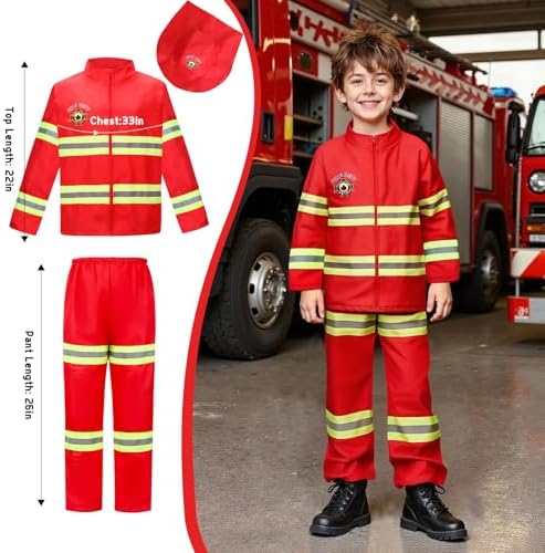 The LOYO fireman role play costume set includes everything a child needs to look the part. Kids firefighter costume set comes with one jacket, pents and helmet. The material of fireman costume for kids is durable and lightweight, perfect for hours of indoor and outdoor play.