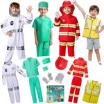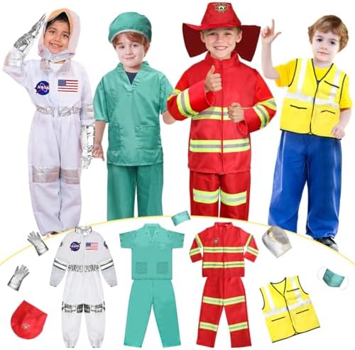 Your little one no longer need to hesitate about their dream career, now they can realize all their dreams with this Kids’ Dress Up Career Clothes. 12pcs LOYO Career Costumes for Kids contains 4 role of pretend fireman / astronaut / doctor / worker vest outfit, it’s a perfect boys costume for Halloween, costume parties or just pretend playtime for preschool kids 3 4 5 6 7 8 years old.