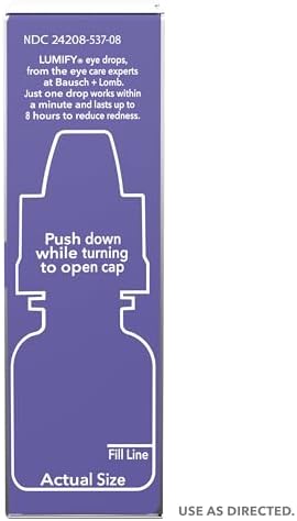 LUMIFY eye drops significantly reduce redness to help eyes appear whiter, brighter, and more radiant. LUMIFY is a unique, FDA approved formulation, that was developed by doctors and is clinically proven to reduce redness in 1 minute and last up to 8 hours. LUMIFY works differently to selectively target redness with a lower risk of potential side effects. Contains absolutely no bleach or dyes.Adults and children 5 years and older. Instill 1 drop in the eye(s)every 6-8 hours, no more than four times daily.