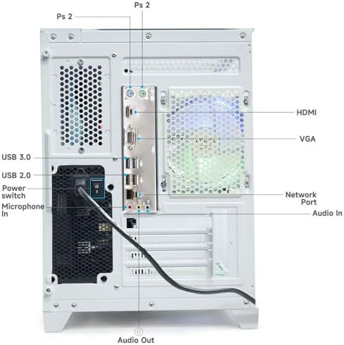 Hardware Configuration: Graphic output options include 1 x HDMI, and 1 x VGA, Additional Ports Including USB 2.0, USB 3.0, HD Audio 3, 5x RGB fan for air flow.