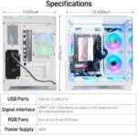 Design & Extras: The PC is equipped with 5× RGB fans and lighting effects. These lights can be set according to the user’s preference, adding a splash of colour to the PC and enhancing the overall visual effect. The chassis is designed with glass panel on three sides, which allows users to visualise the internal hardware layout and lighting effects. At the same time, the glass side panels also ensure good heat dissipation performance, ensuring that the hardware remains stable under prolonged operation Applicable Scenarios