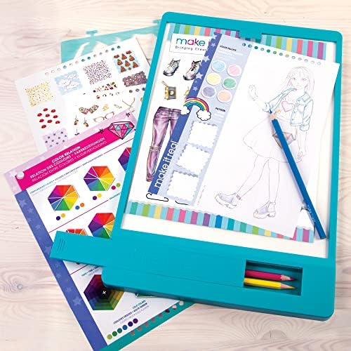 EVERYTHING INCLUDED. This drawing kit has everything your child needs to get started with fashion design. Includes light table, sketchbook with design guide, colored pencils, stencils and stickers.