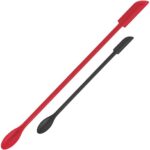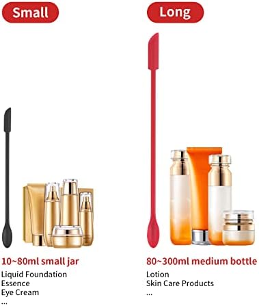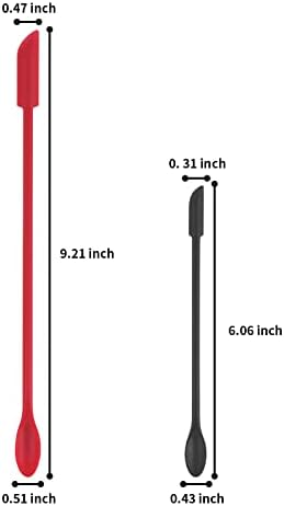 What you will get. Come with one 9.2 inch length red makeup spatula and one 6 inch length black mini spatula for cosmetics. Double-ended design, one side is mini spoon and the other side is silicone scraper