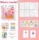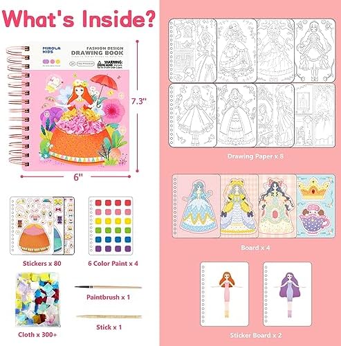 【3 in 1 Princess Design】This Princess craft kits book is compact and portable, measuring just 6 x 7.3 inches. And it features the latest trends over 400+ accessories, including drawing paper, stickers, paintbrushes, and more. It allows children to dress up their own princesses in 3 different ways, which can help develop their concentration, creativity, perception, observation, hands-on ability, and imagination.