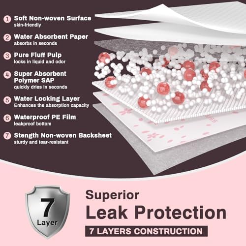 7-Layer Leakproof Construction: Engineered with 7 layers leak lock protection, each layer of MKISS chucks pads effectively absorbs and locks liquids without leakage. Durable enough for heavy-duty use while maintaining peace of mind
