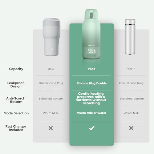 Long-Lasting Power & 36W Fast Charging : Momcozy warmer could warm 4oz of water up to 24 times or milk up to 8 times after one full charge, covering all-day feedings. And with 36W fast charging, it fully recharges in 1.5 hours, always ready for your travel.