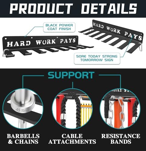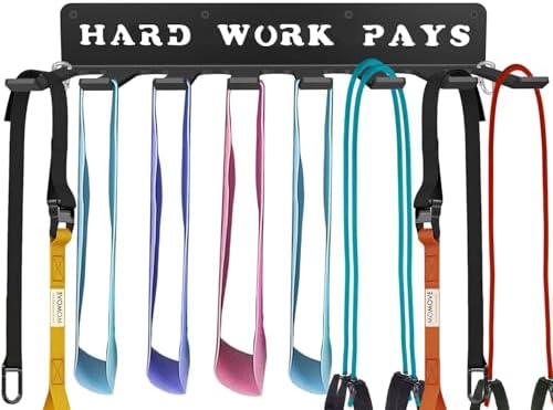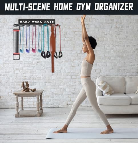 Fitness Bands Included Carabiners Rack Storage Hanger Rack Jump Ropes Rack Multi-Purpose Workout Gear Wall Hanger Storage for Resistance Bands, Jump Ropes, Lifting Belt, Fitness Bands, Barbells