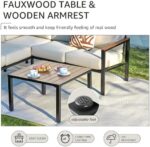 [Soft-Touch & Heat-Resistant Surface] The armrests and tabletop feature a wood-like material that’s smooth to the touch—without the risk of overheating. Stay cool even on sunny days, and rest drinks or snacks safely. Adjustable table feet keep everything stable even on uneven ground.