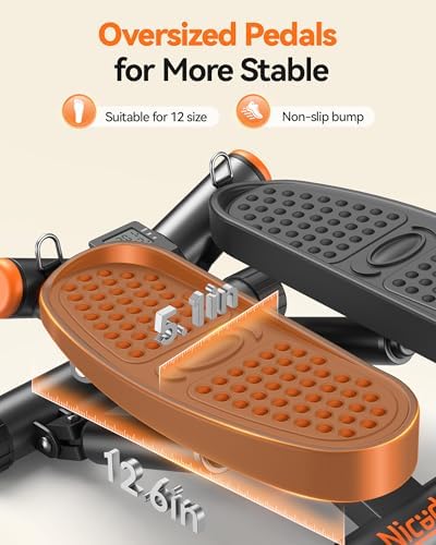 Larger and More Comfortable Pedals: The oversized pedals fit a size 12 foot and keep the weight of your workout on the stepper, which gives you a better sense of balance; The non-slip bump design makes it safer for you to exercise barefoot or in shoes