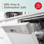 BPA-free; dishwasher-safe (top rack only), made in the USA