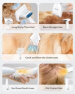 7-Temp Dryer for Fluffy Hair: Choose from 7 heat settings (95 ⁰F-104 ⁰F-113 ⁰F-122 ⁰F-131 ⁰F-140 ⁰F-149 ⁰F) and 3 flow speed with 3 nozzle attachments (round, narrow, diffuser) to dry fur quickly while keeping it fluffy