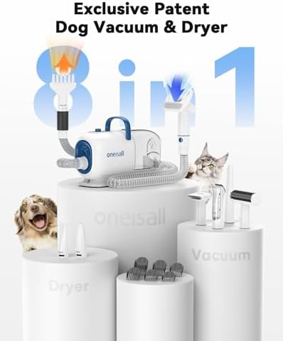 3-in-1 Vacuum, Dryer & Clippers: This 8-in-1 dog grooming kit with blow dryer simplifies pet grooming vacuum—shed, wash, dry, and trim at home without extra tools! Store all tools in the convenient storage bag for easy access