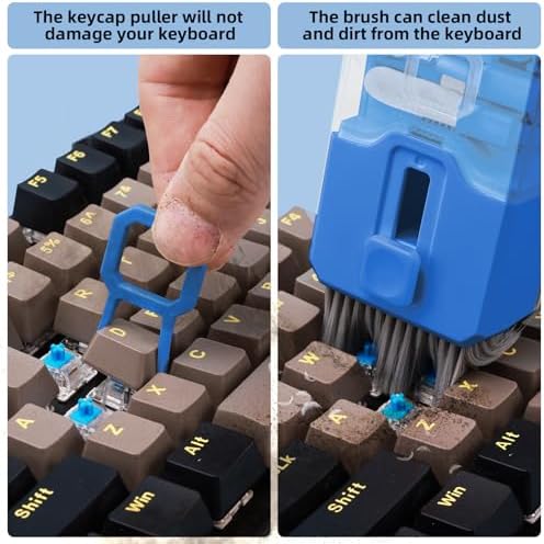 Push the ergonomically designed button to eject the brush. The camera cleaning kit is easy and labor-saving to use. Medium firm retractable brush for laptops and keyboards. The Large high-desinty brush cleans the crevices of mechanical and gaming keyboards, as well as laptop keyboards. The keyboard cleaner is so practical that can clean all my gadgets. Extend the life of the equipment.