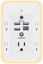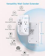 【Versatile 10 in 1 Outlet Extender】- 4 usb charging ports, 5 wide spaced outlets, 3 side power stip provides large space and saves you another charger head space. 360°night light around makes it easy for you to see the outlets in dark corners or at night. With the removeable screw and the plastic prong, the multi plug outlet is firmly attach to your DUPLEX and DECOR outlets, and perfect for bedroom, dorm room etc