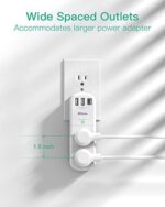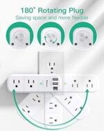 【Wide Space & Rotating AC plug】 – Unique 3-Side space-saving design power strip, 6 AC outlets with wide space in between, are separated enough to fit big plugs without blocking each other. The swivel power strip can turn left and right 90 degrees conveniently, compact design (5.7*1.9*1.7 Inch) and easy to carry, use anywhere needed.