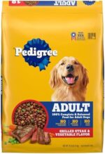 Dogs bring out the good in us. Pedigree brings out the good in them. Express your love for your dog by serving Pedigree Complete Nutrition Adult Dry Dog Food, Grilled Steak & Vegetable Flavor. This 100% complete and balanced adult dry dog food recipe is great-tasting and contains whole grains, protein, and accents of vegetables, bringing your dog a meal with quality nutrition that keeps them happy. To support your dog’s health and vitality, this dry dog food recipe is formulated with 36 vitamins, minerals, and amino acids. It also contains Omega 6 Fatty Acid and Zinc to help nourish a healthy skin and coat. With no high fructose corn syrup, artificial flavors, or added sugars, Pedigree Complete Nutrition Adult Dry Dog Food, Grilled Steak & Vegetable Flavor shows your dog that you care…and have great taste.