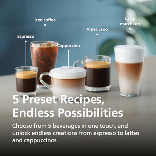 5 AROMATIC COFFEES: Enjoy your favorite coffees for special moments. Whether you crave an espresso, coffee, americano, cappuccino or a latte macchiato, your fully automatic espresso machine delivers a perfect in-cup result with no hassle and in no time.