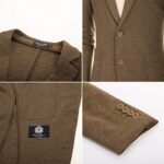 The video showcases the product in use.The video guides you through product setup.The video compares multiple products.The video shows the product being unpacked. Mens knit blazer for winter Merchant Video