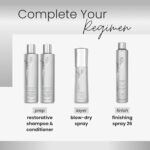 Blow-Dry Spray dramatically reduces blow-dry time up to 50%, provides intense thermal defense up to 428°F, and resists humidity for up to 20 hours. This lightweight formulation detangles, smooths, and increases shine. Ideal for medium-textured hair.