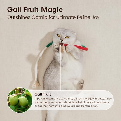Teething Fun: Ideal for kittens and cats alike, these chew toys are an essential addition to your kitty’s dental care. With natural gall fruit and rope design, the toys are perfect for teething and teeth cleaning, they combat tartar and freshen breath, making dental hygiene a fun activity for your little one!