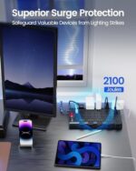 Power Strip with Multiple Protection to Protect Your Valuable Devices 1000 days Long-lasting Performance and 24/7 supprot 2100 JOULES SURGE PROTECTOR top-grade UL94 V-0 Fire Resistance material