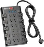 【28-in-1 Versatile Power Strip】 FCC, RoHS safety certified, with the extension cord and flat plug certified by UL. Superdanny power strip surge protector has 22 grounded 3-prong outlets and 6 USB ports, providing power for all devices that you need to plug in at one location. Perfect for gaming or media set up, surround sound system, TV, phone, tablet, PC, laptop, gaming computers, lamps, and other devices simultaneously.