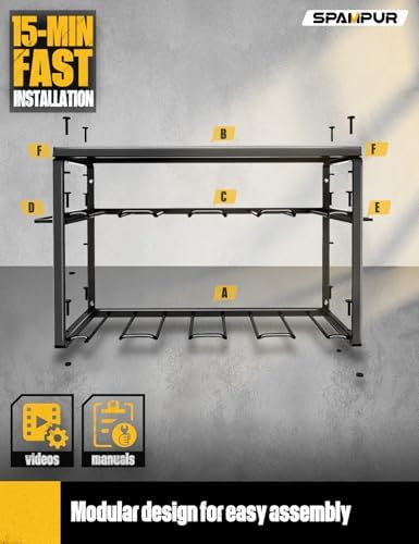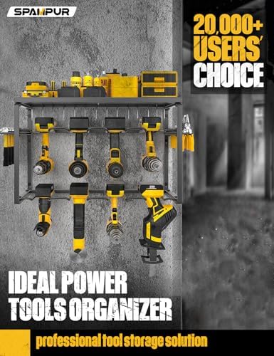 Easy to Assemble: Our Garage storage shelves Wall Mount requires fewer screws than regular wood power tool racks. Comes with wall-mounting hardware, to DIY is easy and can be done in minutes. The Tool Organizer Wall Mount can be mounted on tile, concrete and wood walls. Simple and smooth lines make it ideal for garages, homes, workshops, sheds, backyard shops and more