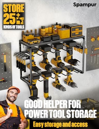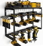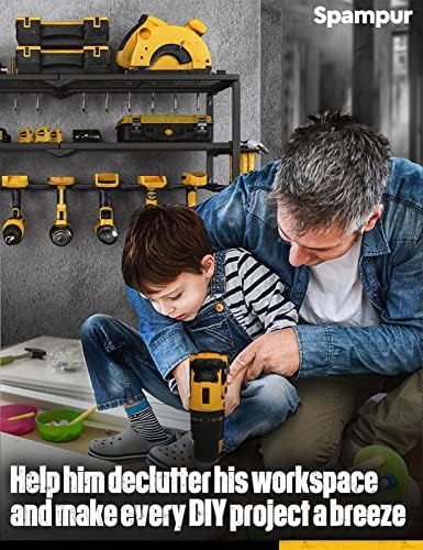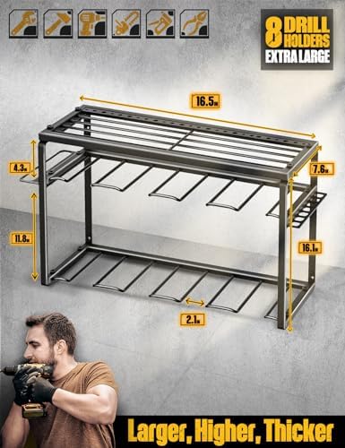 High Load Capacity: The tool storage rack is designed by professionals. Made of heavy-duty steel. Painted matte under high temperature. Smooth texture that is not easy to rust. The edge of the drill stand is doubly reinforced for extra strength. Non-slip. Can support the load for long. Each cordless drill storage rack can hold up to 100IB