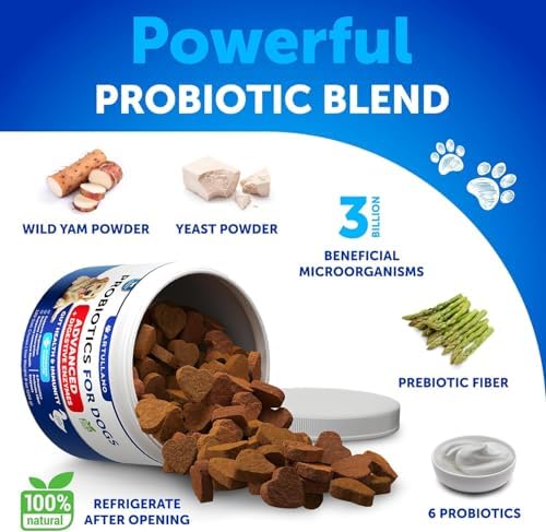 Improve Gut Health & Relieve Digestive Issues: Our Advanced Probiotic for Dogs enhances gut health, alleviating irritable bowels, gas, bloating, constipation, loose stools, and anal gland issues