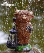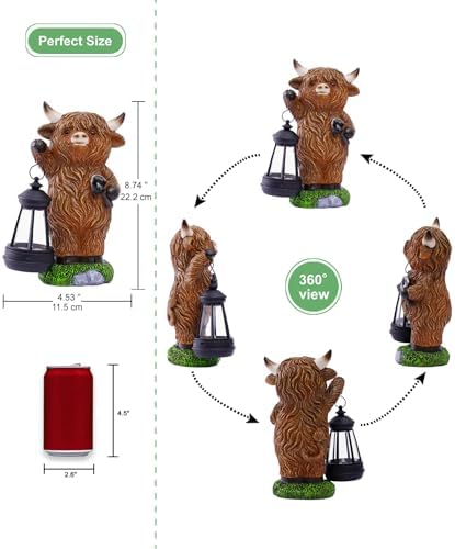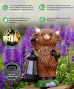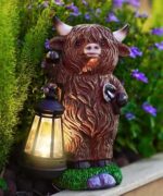 The video showcases the product in use.The video guides you through product setup.The video compares multiple products.The video shows the product being unpacked. Highland Cow with Solar Lantern Merchant Video