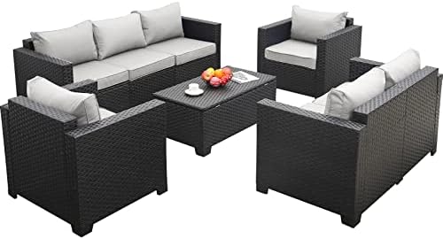 Quality and Durable: founded atop a powder-coated steel frame, wrapped in dense all-weather wicker with woven details closely in a black finish with stereo arcuate stripe for a tastefully textured, cozy look, makes wicker patio furniture set exceptionally durable