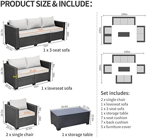 Highly Adaptable: the patio conversation set includes armchairs, loveseat, couch, and storage table, styles coverage are diverse and unique. Depending on needs and better space utilization, various layouts and combinations are suitable for any decorative fashion and scene, indoors or outdoors; the table with storage allows storing multiple items for easy access anytime, is superbly convenient, greatly enriches your outdoor life
