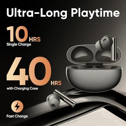 Long-Lasting Power and Seamless Connectivity:Enjoy uninterrupted listening sessions with the realme Buds Air 6Pro. The earbuds offer up to 40 hours of total playback time with the charging case, meaning you can listen for days on a single charge. Furthermore, Bluetooth 5.3 connectivity ensures a stable and reliable connection, while 55ms ultra-low latency guarantees perfect synchronization for videos and games.