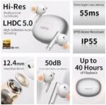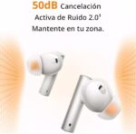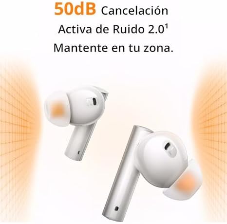 50dB Active Noise Cancellation: realme Air 6 50dB noise cancelling earbuds have a high sensitivity in-ear sound sensor, an oversized driver, and an innovative noise isolation chamber that cancels up to 98.5% of noise for peaceful travel.