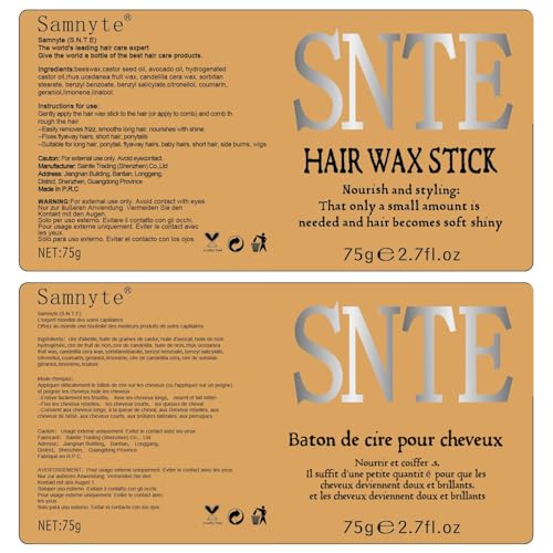 HOW TO USE HAIR STICK WAX: Push out an appropriate amount of hair wax from the bottom of the easy-to-carry wax stick, apply a small amount of wax to flyaway frizzy parts of the hair to avoid sticking to your hands, and use a comb to help comb your hair for a smoother and shinier look.