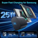 Small & Powerful: With 25W charging power but smaller size, this Samsung charger fast charging cord is more convenient and portable. Equipped with a type c port, you can charge your device back to full power in no time by using the 25W USB C fast charger for Samsung Galaxy S25 series. It only takes 30min to charge your Samsung Galaxy S25/S24/S23 ultra from 0 to 60%, 5 times as fast as standard USB C charger.
