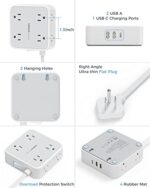 Flat Extension Cord: With only 0.31 in ultra thin flat head design, flat power strip can easily fit in tight spots and hide behind sofa, bed, nightstand or other furniture, sitting flush against the wall; 45° right angle design create an extra space for other plug below without blocking