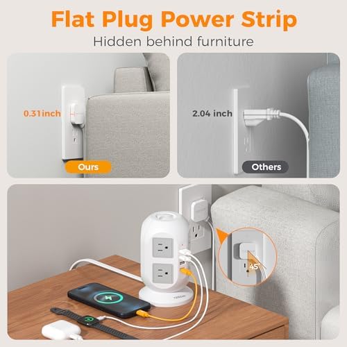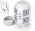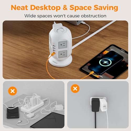 TESSAN Surge Protector Tower: Equipped with overload protection, short-circuit protection, over-current protection, and etc; Reliable on/ off switch can automatically shut off and protect your expensive electronics, providing you with a safe and reliable charging environment