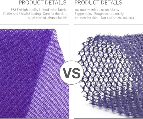 【More efficient cleaning】The exfoliating body net is rougher than a ordinary bathing cloth, but soft enough for daily body cleansing.easy for removing dead skin, dirt, oil, and eliminating impurities, unclogging pores, suitable for women and men of most ages to use