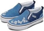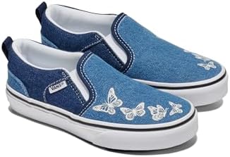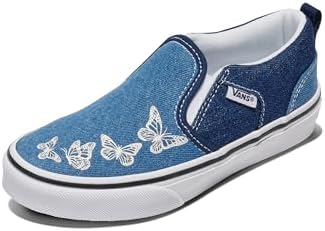 She’ll slip into effortless style and comfort with the Vans Missy Asher sneakers. Great for girls transitioning between youth and teen sizes, these Vans slip-ons are the perfect blend of timeless design and modern, easygoing comfort. The durable canvas uppers and stretchy side panel accents make them an easy-to-wear, stylish addition to any outfit – from school uniforms to her own unique style of dress. Meanwhile, the padded collar and vulcanized rubber waffle outsole deliver superior comfort and traction whether she’s rushing to class, going to the movies, or just hanging out with friends. Since 1966, Vans has inspired creativity, individuality, and fun – because growing up never means giving up her style.