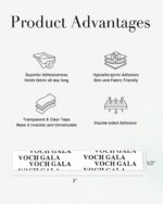 Fabric Compatibility Guide Added – To reduce adhesive issues, we’ve added a 3-tier fabric guide covering 22 common materials. Our tape works best on cotton, polyester, nylon, rayon blends, spandex blends, and lightweight or stretch denim. Use with caution on heavy denim, wool blends, matte PU leather, thick knits, pure rayon, and lined lace. Do not use on silk, velvet, chiffon, sheer lace, organza, glossy PU, or open-weave knits. Always test before use for the best results.