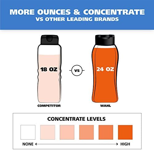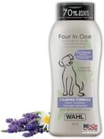 Our shampoos are concentrated, which means a little bit goes a long way! Be sure to thoroughly rinse your dog after shampooing to leave no residual shampoo behind. In addition, it’s important to always comb out and dry your pet’s coat; leaving your dog with damp fur for hours can lead to potentional risk for dogs with sensitive skin. Wahl’s Calming 4-in-1 shampoo gently cleanses, conditions, detangles, & moisturizes your dog’s coat and skin. The rich lather helps remove dirt and environmental residue that dulls your puppy’s coat, leaving it looking clean, silky, and smooth. The Lavender Chamomile scent leaves your pet smelling great. Our plant derived ingredients make our shampoo the choice for owners who want to avoid harsh chemicals for their dog and themselves. Our shampoo is PEG-80 free, alcohol free, paraben free, and pH balanced. The 24 oz size and concentrated formula allows for up to 70% more baths compared to other leading brands. Wahl has been serving professional vets and groomers for over 50 years, helping to clean and condition fur & hair for smooth, soft coats. As a company of animal lovers, we believe your pet deserves the very best.