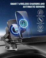 [Enhanced suction cup up to 50LB]: Car Phone Mount with Wireless Charging –With upgraded super-strong suction and a super-sticky gel pad, it firmly attaches to the dashboard, windshield, and other flat surfaces. Retains strong suction even at high temperatures. Maintenance is a breeze – rinse with warm water and air dry to restore the suction cups. Upgrade your driving experience with this car must haves reliable and versatile car phone mount