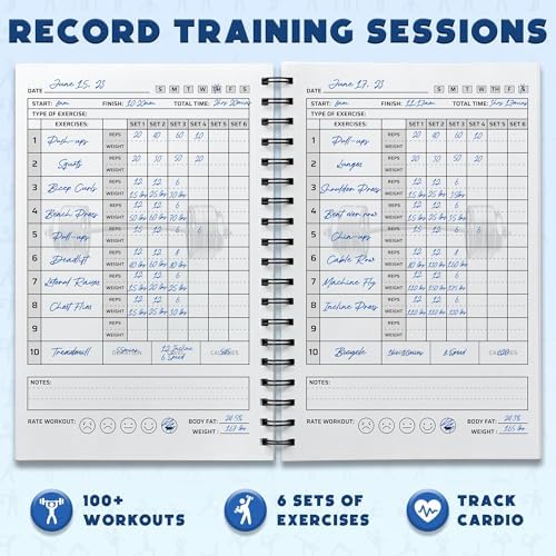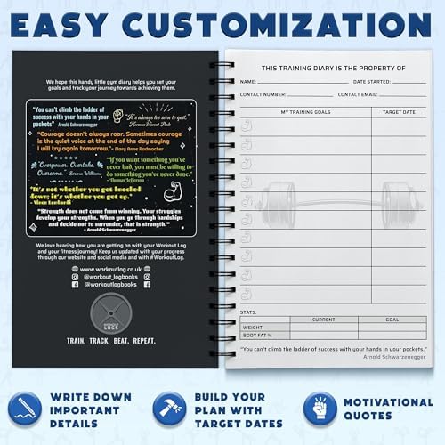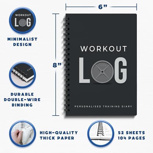 NEW COVER – Substantially thicker, premium 500 GSM cover + heavy-duty 100 GSM paper designed to withstand punishment on the gym floor and sweaty gym bag; Double wire binding spirals for long-lasting durability; Perfect gift for gym enthusiasts