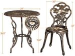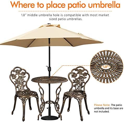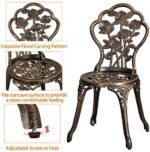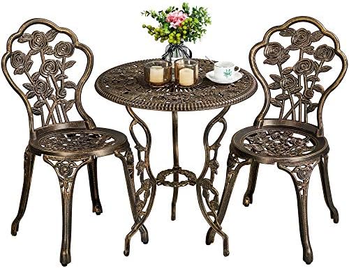Vintage rose pattern: Rose flowers blooming everywhere on the table and chairs, making this bistro outdoor table set elegant and vintage. The back of two seats are subtly crafted floral petal shape, perfect for garden, lawn, backyard or any patio. Rose patterned bistro table set offers a sense of romance and elegance, looking stunning near and far.