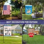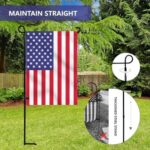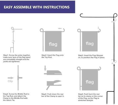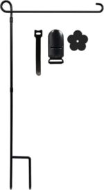 【FIT AND NO BLOWN AWAY】- Our garden flag stand holds the standard size small flags perfectly (max to 12.5” wide). The stand comes with rubber stopper and clip with adjustable Velcro that attaches to the flag and stand, Keep your garden flag from blowing away, Work great especially in windy conditions.